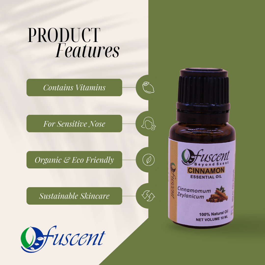 WHY CINNAMON ESSENTIAL OIL: Cinnamon Essential Oil is perfect for your daily routine. It helps reduce feelings of anxiety and stress, while its warm, comforting scent offers a natural boost to your skin and mind.