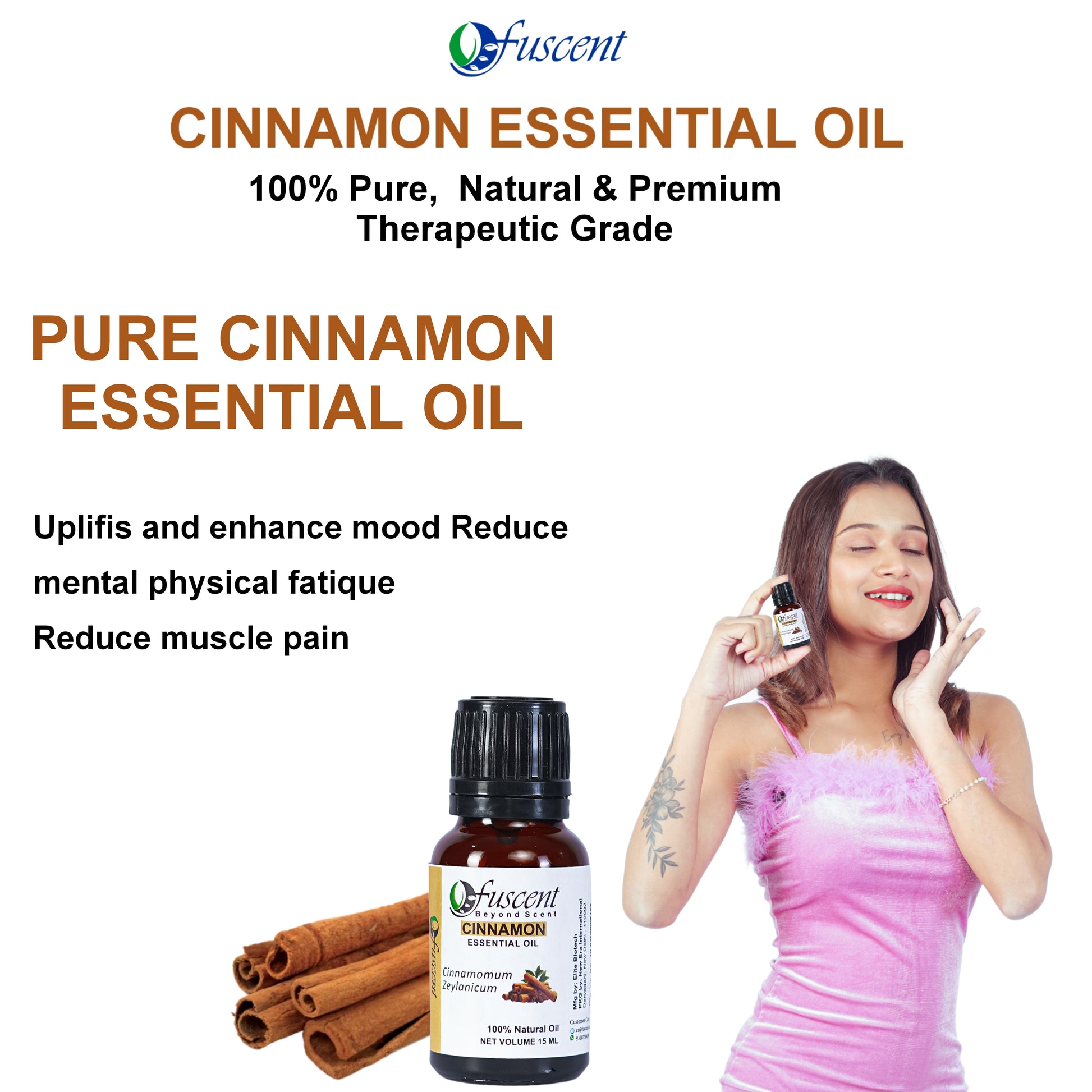 WHY CINNAMON ESSENTIAL OIL: Cinnamon Essential Oil is perfect for your daily routine. It helps reduce feelings of anxiety and stress, while its warm, comforting scent offers a natural boost to your skin and mind.