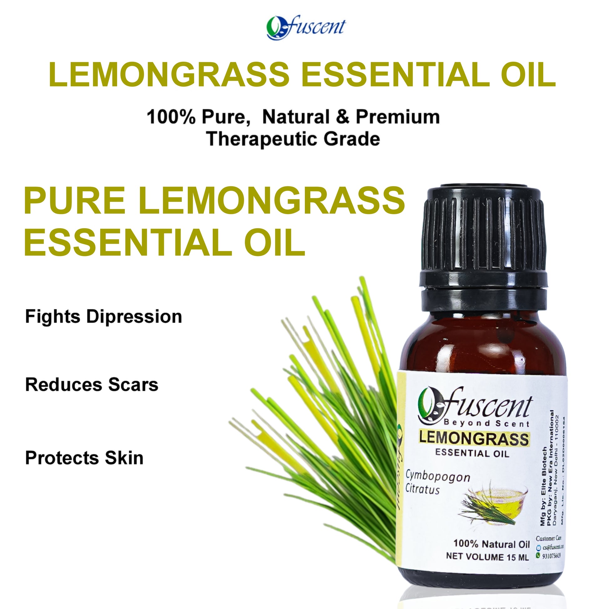 WHY LEMONGRASS ESSENTIAL OIL: Lemongrass Essential Oil is a natural remedy known to promote a healthy digestive system and overall well-being. Widely used in aromatherapy, it helps relieve stress, anxiety, and depression with its uplifting and refreshing scent.